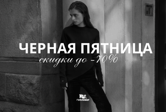 Черная пятница – прекрасный повод порадовать себя новинками со скидками до -70%. Позвольте себе больше поводов для улыбки и хорошего настроения. Приятных покупок и отличного настроения вместе с ТРК «Гулливер»!