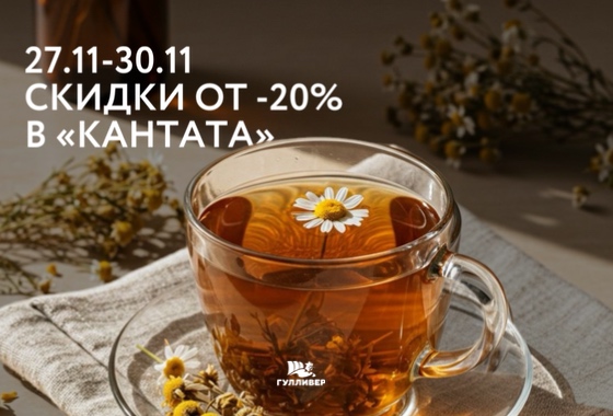 Любимый чай, кофе, десерты или подарки со скидками от -20% на все! А тем, у кого есть своя постоянная скидка от -15% и выше, «Кантата» добавит скидку в -7%.