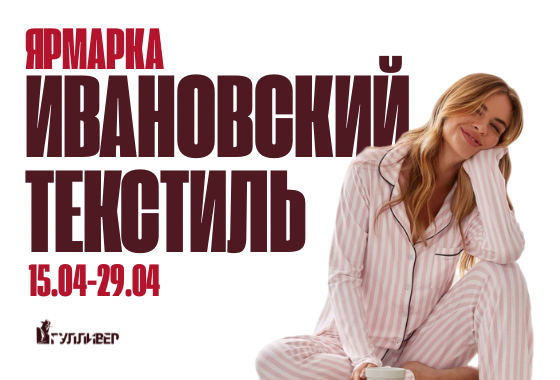 С 15 апреля по 29 апреля в ТРК «Гулливер» пройдет ярмарка-продажа Ивановского текстиля и других производителей!